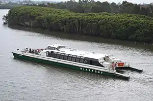 Due to silting and pollution of the river, Sydney Ferries services on the Parramatta River ceased to serve the wharves west of Meadowbank in 1928.[3] Meanwhile, changes in the design of ferries meant that the deep-hulled vessels were unable to go further upstream than the Meadowbank bridge. However, following dredging work and the introduction of the RiverCat catamarans, the State Transit Authority was able to resume services to Rydalmere and Parramatta in December 1993.[4][5][6][7]