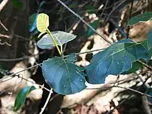 The species produces slender stems, less than to 20 mm diameter, and is dependent upon climbing over rock faces or other plants to reach sunlight. The stems may produce a watery sap when damaged. The broad, opposite leaves are clothed in brown hairs, giving rise to the common name.[1]