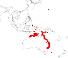 Small, yellow and brown flowers are followed by long, slender pods which are 7 to 10 centimetres in length.[1]