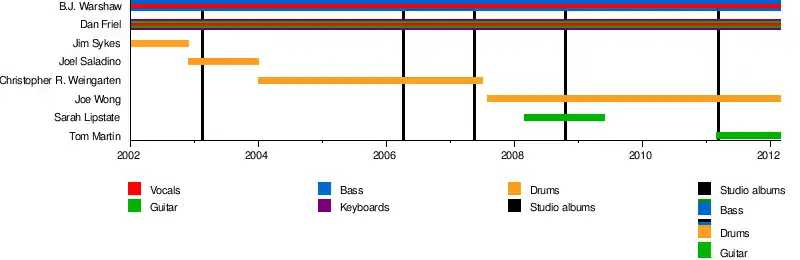 - B.J. Warshaw - bass guitar, vocals (2002–2012)