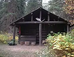 The Pass Creek Snowshoe Cabin, built in 1938 in Glacier National Park, is a significant resource both architecturally and historically as a shelter, usually 8–12 miles (13–19 km) apart, for patrolling backcountry rangers.[2]
