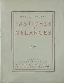 Pastiches et mélanges ("Pastiches and mixtures") is a collection of accounts of the Lemoine case by Marcel Proust, as recounted in the style of sundry classical French authors (namely Balzac, Flaubert, Sainte-Beuve, Henri de Régnier, Michelet, Faguet, Renan and Saint-Simon); it was released in 1919.[1][2][3]