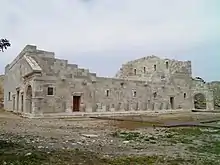 Hadrian's Granary, so-named as it was built during his visit in 131 AD, lies on the side of the ancient harbour for storage of cereals and other goods to be shipped to Rome. It is 75m x 25m and was divided into 8 sections.