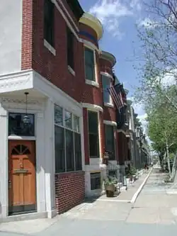Three-story Victorians built circa 1900 to 1910 line the park's border. Two-story rowhouses dating from the 1920s line quaint and narrow side streets, some still paved with brick. Interiors often feature pressed tin ceilings, hardwood floors, stained glass windows and ornate moldings. Many houses still have original marble steps.