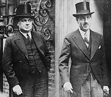 After the war, he was Minister of Foreign Affairs under the subsequent ministers Achille Van Acker and Camille Huysmans. He was twice appointed Prime Minister as well, first from 13 to 31 March 1946, the shortest government in Belgian history, and again from March 1947 to August 1949. During his last government, two important pieces of housing legislation were enacted. The De Taeye Act of 1948[8] organised fiscal rebates, credit facilities, and premiums for social dwellings built either on private or public initiative, while the Brunfaut Act of 1949 established a central budgeting organisation for governmental social housing policy, shifted the financial burden of infrastructural works to the state, and organised the financing of the two National Housing Societies.[9] Under a law of 16th of June 1947 holiday duration was tripled for under 18 year olds, and doubled for those between the ages of 18 and 21.[10] Holiday pay was also doubled for the first week by the law of August the 10th 1947.[11]