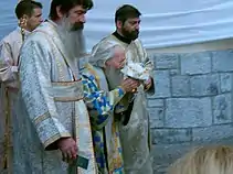 Pavle died on 15 November 2009, after more than two years spent in the Military Medical Academy in Belgrade.[27] Citizens were able to pay tribute to Patriarch Pavle at the Cathedral Church of St. Michael the Archangel in Belgrade.[28] The Divine Liturgy was held on November 19 inside St. Michael's Cathedral (Saborna Crkva), with His All-Holiness, Ecumenical Patriarch Bartholomew presiding, while the funeral service was held outside of Cathedral of Saint Sava and he was laid to rest on 19 November, in Rakovica monastery.[29] The funeral was attended by Ecumenical Patriarch Bartholomew I of Constantinople, Patriarch Daniel of Romania, Filaret, Metropolitan of Minsk and Slutsk, Archbishop Anastasios of Albania, Metropolitan Christopher of Prague and Roman Catholic Cardinal Angelo Sodano.[30]