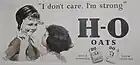 He drew five different scenes of snow activities for the New York, Ontario and Western Railway (a passenger or freight carrier) in 1921–22.[165] They described the Catskill Mountains in Sullivan County, as a lively and refreshing vacation spot. He designed greeting cards for printer William Edwin Rudge in 1921.[166] Martin drew a cheerful boy eating baked beans for Heinz 57 in 1927.[167] He also created two posters for the American Junior Red Cross, 1929–30. The first was titled "The Flag of Service the World Around." It featured children in festive costumes behind a globe, with one holding up a large Red Cross flag.[168] The second was titled "Juniors Helping Everywhere." It showed twenty miniature scenes of children worldwide in various supportive roles.[71] Martin designed three billboards for the Hecker H-O (Hornby's Oatmeal) Company of Buffalo, New York, 1931.[169] One showed a confident young football player being patched up, who had oats for breakfast (pictured).[170] The other two emphasized its healthiness[171][172] or deliciousness.[173] These large advertisements (25 feet by 12 feet) appeared on poster panels, to attract passing motorists and pedestrians.[172] They also had short runs in food markets—on their walls, windows, or hanging from overhead wires.[174]