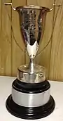 Martin and Bill Tilden competed together in over fifteen tournaments,[109] including the U.S. National Championships of 1920, 21 & 24.[110][111] The latter was played at Forest Hills Stadium (completed in 1923) and on its outlying courts, Aug 25–Sep 2, 1924. His opening-round opponent was two-time Wimbledon titlist, Gerald Patterson of Australia. 41-year-old Martin won a set, but lost the match 4-6, 4-6, 9-7, 0-6.[88][112] (There was a two-day rain delay after the third set.)[113] He competed in four consecutive National Veterans' Championships (for ages 45+) at Forest Hills from 1928 to 31.[114] Martin was a standout singles and doubles player, for both the University Heights (Bronx, N.Y.)[106] and County (Hartsdale, N.Y.) Tennis Clubs.[115] He was caught up in the fallout of a USLTA ruling, 1924. It prohibited players from writing for profit after a certain date. The distinction between amateurism and professionalism was hotly contested and debated from Feb to Dec 1924.[116] Martin came out "in favor of a reconsideration of the matter."[117] He often acted as the women's referee.[118] He organized tournaments for youngsters, as a committee member of the Briarcliff Lodge Sports Club.[119] The Westchester County Tennis League began play with a six-team format in 1926.[120] They held the annual Paul Martin singles tournament for over eighty years.[121][122][123] It was initiated by player and executive Fenimore Cady, who lived in Mount Pleasant, N.Y., 1932.[124] The winners had their names engraved along the base of one of Martin's prized cups (pictured).[125][126] His memory was also honored by a short-lived club tourney.[127]
