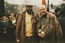 Oestreicher attending a protest against the bombing of Libya, 1986