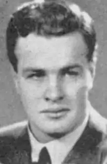 Just before the outbreak of the Second World War, No. 88 Squadron was sent to France as part of the Advanced Air Striking Force. During the Phoney War, it flew reconnaissance missions.[1] Once the Battle of France commenced in May 1940, the squadron began offensive operations. On 10 May, it mounted an attack on a bridge at Maastricht. During this mission, his Battle was damaged by flak and he and his crew had to bail out. They landed behind enemy lines but after gaining civilian clothes were able to it make back to Dieppe after five days of walking. There they found three Hawker Hurricanes in various states of disrepair; cannibalising parts from the other two aircraft he was able to make one servicable and flew it to England.[5]