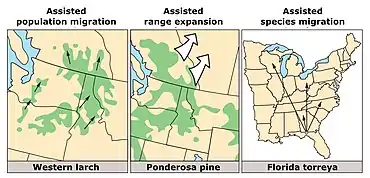- ↑ Williams, Mary I; Dumroese, R Kasten (2014). "Assisted Migration: What It Means to Nursery Managers and Tree Planters" (PDF). Tree Planters' Notes. 57 (1): 21–26. Retrieved 19 July 2022.
