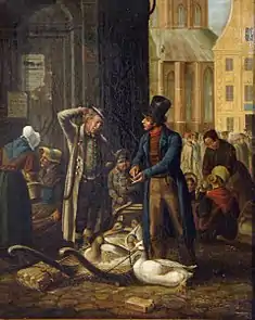 In addition to his paintings, he created lithographs of people in military uniforms and traditional folk costumes. In the 1870s, he produced illustrations for several works by the Low-German comic writer, John Brinckman.