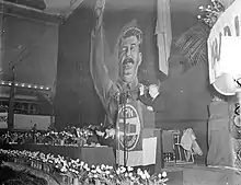 Paul de Groot speaking at CPN conference, 1950