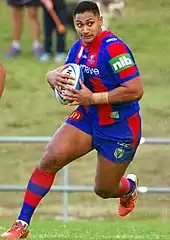 In round 1, he made his club debut for Newcastle against the Gold Coast Titans, playing off the interchange bench in the 12-30 loss at Cbus Super Stadium.[26] In round 12 against his former club Parramatta, he scored his first try for Newcastle outfit.[27] He finished the 2016 season having played in 15 matches and scoring one try.[28]