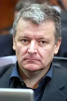 Serbia's electoral system was reformed in 2011, such that parliamentary mandates were awarded in numerical order to candidates on successful lists. Marčok was given the ninety-fifth position on the DS's Choice for a Better Life list and was not returned when the list won sixty-seven mandates.[13] He was, however, re-elected to the Bački Petrovac assembly in the concurrent 2012 local elections (once again at the head of the DS list) and became mayor of the municipality when the DS formed a local coalition government after the election.[14][15][16]