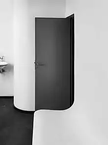 In designing the building, Le Corbusier and Jeanneret aesthetically and ideologically diverged from the Art Deco style which dominated the exhibition. The architects, viewing architecture as too removed from human needs, emphasized function and sought to drastically diminish decoration.[3] In order to reduce the need for decorative furniture, Le Corbusier and Jeanneret included a myriad of built-in-furniture including cabinets and shelves.[4] The pavilion also included several cubist sculptures by Jacques Lipchitz, one of which was placed on the grass in front of the building.