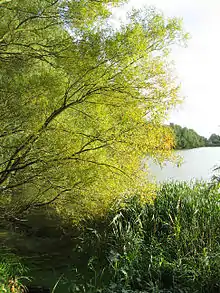 The corner of one of the ponds at Paxton Pits Nature Reserve