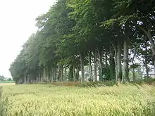 The plateau's exposure to the winds of the sea may account for one of the features of the rural architecture of the region: the plain, unadorned farmhouses in farmsteads, typically enclosed by high earth banks, walls, and a sheltering square of trees. (see also Architecture of Normandy).