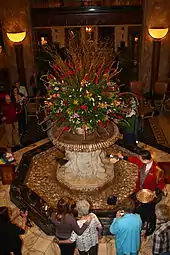The Peabody is probably best known for a custom dating back to the 1930s. The General Manager of the time, Frank Schutt, had just returned from a weekend hunting trip in Arkansas. He and his friends found it amusing to leave three of their live English call ducks in the hotel fountain. The guests loved the idea, and since then, five Mallard ducks (one drake and four hens) have played in the fountain every day.[1]