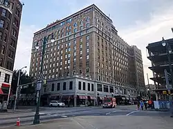 Among its guests were Presidents Andrew Johnson and William McKinley and Confederate Generals Robert E. Lee and Nathan Bedford Forrest. Jefferson Davis, the former President of the Confederacy, lived there in 1870 when he worked as president of an insurance company.[2] The hotel closed in 1923[1] in preparation for a move one block away. The building was demolished and Lowenstein's department store was constructed there.[3]