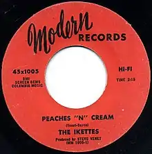 "Peaches 'N' Cream" is a song written by Steve Venet and Tommy Boyce, originally released by The Ikettes on Modern Records in 1965. It became the first Billboard Top 40 single for The Ikettes since their debut "I'm Blue (The Gong-Gong Song)" in 1961.[2]