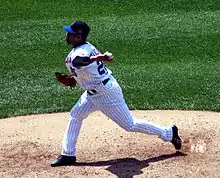 Feliciano led the league in games pitched from 2008 to 2010.[2] In 58 of those games in 2008, the greatest number in the majors, he recorded fewer than three outs. He also led MLB that year in days pitched on zero days rest (36).[15] His 92 appearances in 2010 was the fourth-most in major league history.[4] In that same year, he passed Tom Seaver in games pitched for the Mets with 459.[16][17] He ultimately made 344 relief appearances from 2007 to 2010, the most in major league history over four consecutive seasons.[18][19] At the time of his death, Feliciano's 484 games pitched for the franchise was second all-time to John Franco (695).[20]