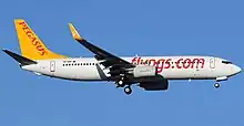 The aircraft was a Boeing 737-86J[lower-alpha 1] (registration TC-IZK), serial number 37742. It was 11 years old at the time of the crash, having first flown in January 2009. The plane had previously been operated by the now-defunct German airline Air Berlin before being acquired by Pegasus in May 2016.[12] Prior to the crash, Pegasus was scheduled to withdraw this aircraft once leasing expired, as the airline plans to move to an all-Airbus fleet in the future.[5][4]