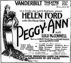 Peggy-Ann is a musical comedy with music by Richard Rodgers, lyrics by Lorenz Hart and book by Herbert Fields, based on the 1910 musical Tillie’s Nightmare by Edgar Smith. The plot of the musical takes place in Glens Falls, New York; New York City, and Havana, Cuba.