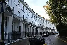 Pelham Crescent is a circa 1825 Georgian crescent of houses in South Kensington, London SW7, England, designed by architect George Basevi. Numbers 1–14 and 15–27 are separately Grade II* listed.[1][2]