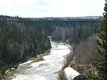 The Pembina River is a tributary of the Athabasca River in central Alberta, Canada. "Pembina" /ˈpɛmbɪnə/ is a Canadian French name for the high bush cranberry (Viburnum trilobum). The river gives the name to the Pembina oil field, an oil- and gas-producing region centered on Drayton Valley. The environmentalist group Pembina Institute also took its name from the river.