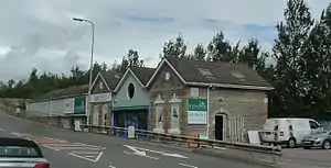 The station closed in January 1962.[1] Most of the buildings are still present, and have been used by a range of businesses, including a shooting range, a garden centre, a second-hand car lot and a marine chandlers. The line is still open as far as Penarth, though it has been single track since 1967.