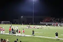 In 1954, officials at Brighton School District #1, which operated Brighton High, informed Indian Landing officials that their high school was reaching capacity and could not assure that the high school would accept new Indian Landing students after 1955.[45] The Indian Landing district had only two alternatives: build their own small high school, which would have been expensive, or be annexed by Penfield Central, located to the east. The merger would significantly increase the student population of the enlarged school district, as the Indian Landing student population (over 800 in 1953 [46]) was nearly as large as the entire Penfield Central population. The Indian Landing district voted for the annexation in April 1954,[47] and the voters of Penfield approved the merger three months later.[48]
