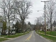 The route begins in Lawrence County where US 422 meets the Ohio state line; PA 208 heads east-northeastward to the village of New Bedford about a mile from the state line. The route junctions with the former PA 932 in the village and was the former alignment of US 422 from the state line to this point, where the old alignment turned southeast; PA 208 continues eastward here. About 3.5 miles (5.6 km) later, it is joined by PA 551 and the concurrency turns northward for about 0.5 miles (0.80 km) before turning east again as it crosses the Shenango River and enters the village of Pulaski. The concurrency ends 0.3 miles (0.48 km) later, and PA 208 continues another 0.3 miles (0.48 km) to its interchange with Interstate 376 (I-376). From here, the route heads into a rural area of northern Lawrence County that is home to an Amish community.[2] The road continues another 3.6 miles (5.8 km) east, where it junctions with PA 18 about 1.4 miles (2.3 km) west of the borough of New Wilmington, which the route enters shortly thereafter. In the borough, PA 158 joins briefly, and then leaves the route at the northern terminus of PA 956. PA 208 passes north of Westminster College before it leaves the borough and continues eastward about 3 miles (4.8 km) to the borough of Volant, where, at the east end of the borough, the route intersects with the northern terminus of PA 168 and turns northeast and crosses the county line 0.7 miles (1.1 km) later.
