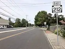 The portion of PA 212 between Quakertown and Richlandtown dates back to 1854, when the Richland Turnpike or Plank Road Company was created to build a turnpike linking the Doylestown Road (present-day PA 313) to the Hellertown Road (present-day PA 412). This road existed as an unimproved road into the 20th century.[4] The present-day alignment of PA 212 was not legislated as a state highway in 1911.[5] PA 212 was designated by 1927 to run from US 309 (now PA 309) and PA 312 (now PA 663) in Quakertown northeast to US 611 (now PA 611) in Riegelsville, heading east through Quakertown on Broad Street before following its current alignment. At this time, the route was paved from Quakertown to a short distance north of Richlandtown.[6] By 1930, the route was paved from north of Richlandtown to past the east end of the PA 412 concurrency. The easternmost portion of the route leading to US 611 south of Riegelsville was under construction at this time.[7] The portion of PA 212 under construction was completed by 1940.[8] By 1971, PA 313 was extended west to run concurrent with PA 212 on Broad Street in Quakertown.[9] The western terminus of PA 212 was cut back to its current location at PA 313 by 1991, removing the concurrency with PA 313.[10]