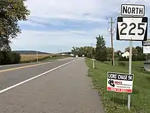 When Pennsylvania first legislated routes in 1911, the present alignment of PA 225 was not given a number.[6] In 1927, the section of road between a connector to PA 14 (now PA 147) south of Herndon and Shamokin was designated as part of PA 45, which continued east to Easton.[7] PA 225 was designated in 1928 to run from PA 25 in Berrysburg northeast to Line Mountain, following its current alignment to Shamokin before it turned south to Line Mountain; the route replaced the PA 45 designation between south of Herndon and Shamokin. At this time, the road was paved between Berrysburg and Pillow and between Mandata and Shamokin, with the section between Pillow and Mandata under construction.[8] By 1930, PA 225 was paved between Pillow and Mandata and for a short distance to the south of Shamokin. At this time, the road between Dauphin and Berrysburg was unnumbered, with paved sections to the north of Dauphin, to the south of Powls Valley, between Halifax and Fisherville, and between Elizabethville and Berrysburg; a section southwest of Elizabethville was under construction.[9] In the 1930s, the northern terminus was cut back to US 122 (now PA 61) in Shamokin, with the former alignment between Shamokin and Line Mountain becoming part of PA 125, while the route was extended south from Berrysburg to US 11/US 15/US 22/US 322 (Allegheny Street) in Dauphin, following its current alignment south to Dauphin before heading through the borough on Claster Boulevard and Lower Erie Street. At this time, the entire length of the route was paved.[10][11] The intersection with US 22/US 322/PA 14 in Dauphin was reconstructed into an interchange in 1942.[12][13] In 1999, PA 225 was realigned to bypass Dauphin to the west and end at an interchange with the newly constructed US 22/US 322 freeway bypass of Dauphin.[14][15]
