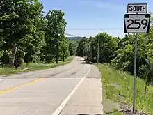 Pennsylvania Route 259 (PA 259) is a 33.4-mile-long (53.8 km) state highway located in Westmoreland and Indiana counties in Pennsylvania. The southern terminus is at U.S. Route 30 (US 30) west of Ligonier. The northern terminus is at US 422 in Cherryhill Township on the border of Yellow Creek State Park.