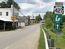 PA 427 begins at an intersection with US 322 in the borough of Sugarcreek in Venango County, heading northwest on a two-lane undivided road. The route parallels US 322 before turning north past a few rural homes. The road heads northeast into farmland, turning east before curving north into wooded areas, running to the east of Sugar Creek. PA 427 turns west to cross the creek, curving north into agricultural areas with some woods and residences. The route continues into Jackson Township and turns northeast to cross Sugar Creek again before making another curve to the north. The road heads into the borough of Cooperstown and becomes South Main Street, heading into residential areas and turning northeast to run along the east bank of Sugar Creek. PA 427 turns west onto Factory Street and crosses the creek prior to heading northwest onto North Main Street and passing a few businesses. The route turns north onto Academy Street and runs between homes the west and the Sugar Creek to the east, curving to the northeast. The road becomes Bradleytown Road as it heads back into Jackson Township and runs north through open farmland with occasional residences. PA 427 continues through areas of farms and woods as it passes through Plum Corners. The road heads into more wooded areas with some farm fields as it crosses into Plum Township and turns to the northeast. The route crosses Sugar Creek again and comes to Bradleytown, where it turns north to remain along Bradleytown Road. PA 427 heads through more agricultural areas with some woods and homes, crossing the creek.[2][3] The route enters Troy Township in Crawford County and immediately ends at PA 27.[2][4]