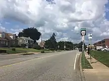 PA 532 begins at an intersection with US 1 (Roosevelt Boulevard) in the Northeast Philadelphia section of the city of Philadelphia in Philadelphia County, heading north-northwest on two-lane undivided Welsh Road. The road passes through residential areas before running past businesses. The route briefly becomes Old Bustleton Avenue before it turns northeast onto Bustleton Avenue, a four-lane undivided road with some segments having a center left-turn lane. PA 532 crosses Grant Avenue and continues through areas of homes and businesses in the Bustleton neighborhood, curving north and coming to a bridge over CSX's Trenton Subdivision railroad line. The road runs past more houses, businesses and apartments, crossing PA 63. The route passes to the west of George Washington High School and intersects Verree Road as it continues through more developed areas, heading northeast into the Somerton neighborhood. PA 532 crosses Byberry Road and continues north, coming to a bridge over SEPTA's West Trenton Line west of the Somerton station. The route crosses Philmont Avenue and curves northeast, reaching an intersection with County Line Road.[2][3]