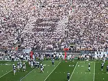 The validity of the sanctions later came into question, and emails surfaced that indicated highly ranked officials within the NCAA did not believe the organization had the jurisdiction to pass down the original sanctions.[35] Subsequent emails, brought forward under subpoena, quoted an NCAA vice-president, "I characterized our approach to PSU as a bluff when talking to Mark [Emmert, NCAA president] ... He basically agreed [because] I think he understands that if we made this an enforcement issue, we may win the immediate battle but lose the war."[36] On September 8, 2014, the sanctions, following a report by former U.S. Senator and athletics integrity monitor George J. Mitchell citing progress by Penn State in implementing reforms, were officially repealed by the NCAA,[37][38] and on January 16, 2015, all previous records were restored.[39]