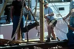 Some materials were salvaged by the Royal Navy from the abandoned and sunken ships not long after the expedition. Readily-accessible wrecks were salvaged by local residents, and the state also authorized at least one formal salvage operation, whose results are not known. In 1809 Ebenezer Clifford recovered 30 cannons and several tons of cannonballs from the river.[3] Later finds in the Penobscot River included cannons found on the river bottom in the Bangor-Brewer area in 1876 and in 1954-55. The obvious importance of the area, with a well-documented history, led to the area's listing on the National Register of Historic Places in 1973, primarily for the potential archaeological significance of materials located there, including military equipment, cargo, and other artifacts.[2]