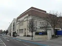 The People's Palace is a Grade II listed building in Mile End in the London Borough of Tower Hamlets. It is home to the Great Hall, a large theatre and entertainment venue, and is now part of Queen Mary University of London. It was the site of the first People's Palace which allowed local people to use a library.