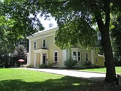The Perez Smith House is a historic house at 46 Lincoln Street in Waltham, Massachusetts. The 2½ story wood-frame house was built in 1851 and is one of the city's finest transitional Greek Revival/Italianate houses. It has a typical Italianate three-bay facade, deep cornice with decorative brackets, and round-arch windows in the gable. It also has Greek Revival pilastered cornerboards, and its center entry is flanked by sidelight windows and topped by a transom window and paneled sunburst. Its windows are topped by heavy corniced lintels.[2]