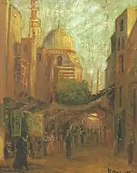 Although he did some portraits, he focused on the people and landscapes of Egypt. He exhibited at Olympia in 1888, Berlin in 1896, at the Zappeion in 1898 and was one of the first to help establish regular exhibitions in Cairo. His paintings were shown and sold in London, New York and Saint Petersburg.