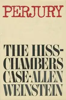 Perjury: The Hiss–Chambers Case is a 1978 book by Allen Weinstein on the Alger Hiss perjury case. The book, in which Weinstein argues that Alger Hiss was guilty, has been cited by many historians as the "most important" and the "most thorough and convincing" book on the Hiss–Chambers case.[1] Weinstein drew upon 30,000 pages of FBI documents released through the Freedom of Information Act, the files of the Hiss defense attorneys, over 80 interviews with involved parties and six interviews with Hiss himself.[2] In 1997, Weinstein published an updated and revised edition of Perjury, which incorporated recent evidence from Venona project decrypted cables, released documents from Soviet intelligence archives and information from former Soviet intelligence operatives.