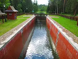 Perkuć Lock – tenth of the lock on the Augustów Canal (from the Biebrza). It is located near the Reserve Perkuć. Built between 1827 and 1828 by the Lieutenant. Julian Piędzickiego between Lake Krzywym and Lake Mikaszewo.