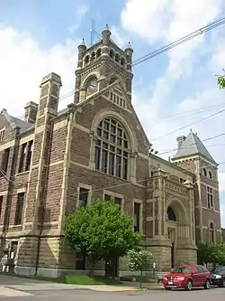 The Perry County Courthouse is a historic government building in the city of New Lexington, Ohio, United States. Built near the end of the nineteenth century after the end of a county seat war, it is the fifth courthouse to serve Perry County, and it has been named a historic site because of its imposing architecture.