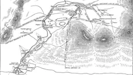 The Alaska-Gastineau Mine was located within the Silver Bow Basin. Its concentrating plant was situated near Thane.[4] The mine had a 2 miles (3.2 km) shaft running through Mount Roberts that reached the Perseverance Mine near Gold Creek.[5] It adjoined the Alaska-Juneau Mine.[6] The mine's low-grade ore is situated on a mountain above the Gastineau Channel. Its ore body covered approximately 2,000 acres (810 ha), more than 2 miles (3.2 km) in length, with 20 miles (32 km) of tunnels and crosscuts. According to Jackling, the block of ore had at least 100,000,000 tons above sea level.[6] The property consisted of a group of claims whose lode system covered 11,000 feet (3,400 m).[2] It was operated on a 6,000-ton daily capacity.[7]