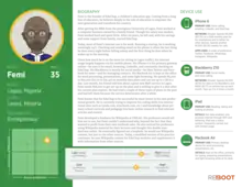 A user persona is a representation of the goals and behavior of a hypothesized group of users. In most cases, personas are synthesized from data collected from interviews or surveys with users.[3] They are captured in short page descriptions that include behavioral patterns, goals, skills, attitudes, with a few fictional personal details to make the persona a realistic character. In addition to Human-Computer Interaction (HCI), personas are also widely used in sales, advertising, marketing and system design.[4] Personas provide common behaviors, outlooks, and potential objections of people matching a given persona.
