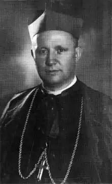 Mišić suddenly died on 26 March 1942.[37] The memorial mass was held on 29 March in Mostar, led by Ivan Šarić, the archbishop of Vrhbosna.[43][44][37] After Mišić's death, on 29 March 1942, as dictated by the canon law, Čule was appointed as diocesan administrator by Archbishop Šarić. The Propaganda approved his appointment on 10 April 1942.[39] Even though the Franciscans hoped that Mišić's successor would be a Franciscan, and their hopes were strengthened by the promises of the leader of the NDH Ante Pavelić to their own Radoslav Glavaš that a Franciscan would succeed Mišić, on 15 April 1942, the Holy See appointed Čule as the new bishop.[45] Even before the death of Bishop Alojzije Mišić, Čule was a candidate for his succession, however, because of the tensions with the Franciscan Province of Herzegovina, the Holy See waited for Mišić's death before his appointment in order to implement its plans for Herzegovina.[46] Dominik Mandić, a former Provincial of the Herzegovinian Franciscans, who was in Rome at the time, concluded that the Holy See refused to appoint a Franciscan as bishop because of the accusations from other Croatian Franciscans against the Herzegovinian Province and their behavior after the dissolution of Yugoslavia. These accusations included Franciscans dealing with worldly affairs, involvement with the violent events during the war, and disobedience to the Church authority.[47]