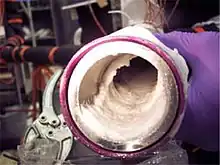 Laboratory duplication of ice crystals clogging the FOHE on a Rolls-Royce Trent 800 series engine taken from the NTSB report[7] addressing the incidents of BA Flight 38 and DL Flight 18.